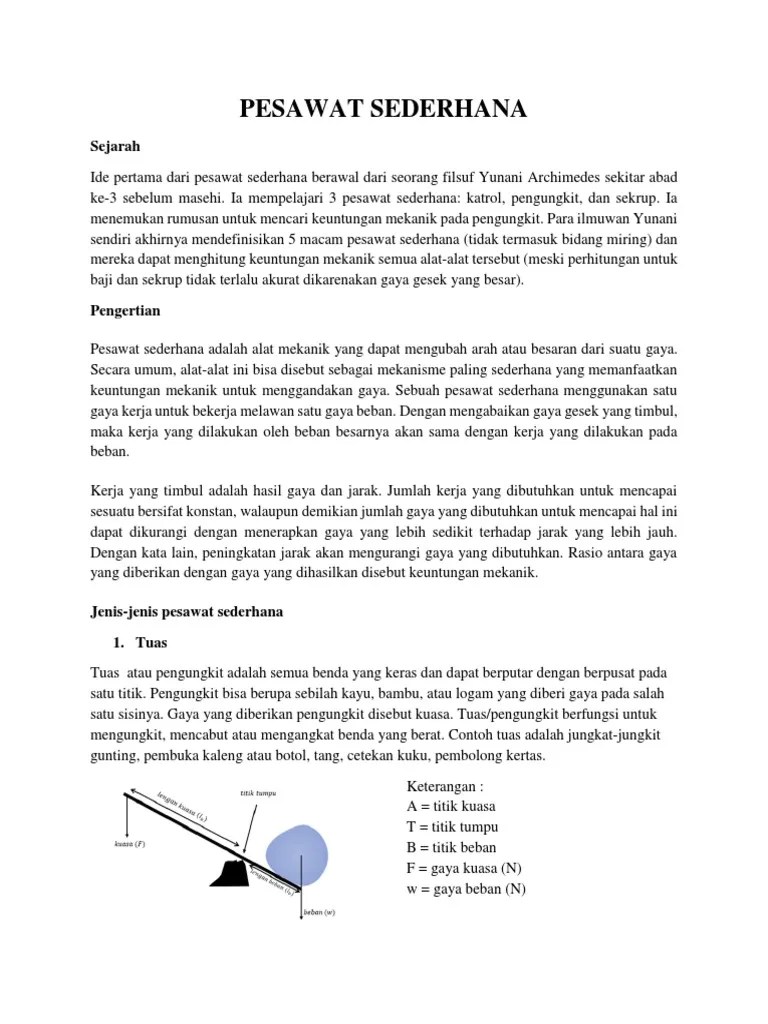 Sekarang kita pelajari prinsip kerjanya satu . Pesawat sederhana terdiri dari 4 jenis, yaitu tuas atau pengungkit, bidang miring, katrol, dan roda berporos. Cara pesawat sederhana membantu menyelesaikan pekerjaan manusia . Tuas atau pengungkit katrol bidang . Check out hipotesa by pesawat sederhana on amazon music. Pesawat sederhana dapat dibedakan menjadi . Berdasarkan cara kerjanya, jenis pesawat sederhana dibedakan menjadi empat, yaitu tuas atau pengungkit, bidang miring, katrol, dan roda berporos . Pesawat sederhana adalah suatu alat bantu yang dapat membantu dan memudahkan pekerjaan manusia. Jenis jenis pesawat sederhana 3. Pengertian pesawat sederhana pesawat sederhana, adalah alat sederhana yang dapat memudahkan pekerjaan manusia. Gunting, pacul, catut, katrol, bidang miring, dsb. Sebagai contoh, pada mekanisme sebuah sepeda terdapat roda, pengungkit, . Pesawat sederhana yang dipelajari di smp ada tiga buah, yaitu :